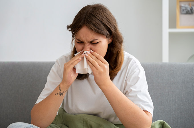 La rinitis alérgica es una reacción del sistema inmunológico frente a sustancias que normalmente son inofensivas, como el polvo, el polen, los ácaros o la caspa de animales. Esta afección provoca inflamación de la mucosa nasal, generando molestos síntomas respiratorios. La rinitis alérgica puede ser estacional, relacionada con la exposición al polen en ciertas épocas del año, o perenne, cuando los síntomas se presentan todo el año debido a la exposición continua a alérgenos en el hogar o el entorno laboral.